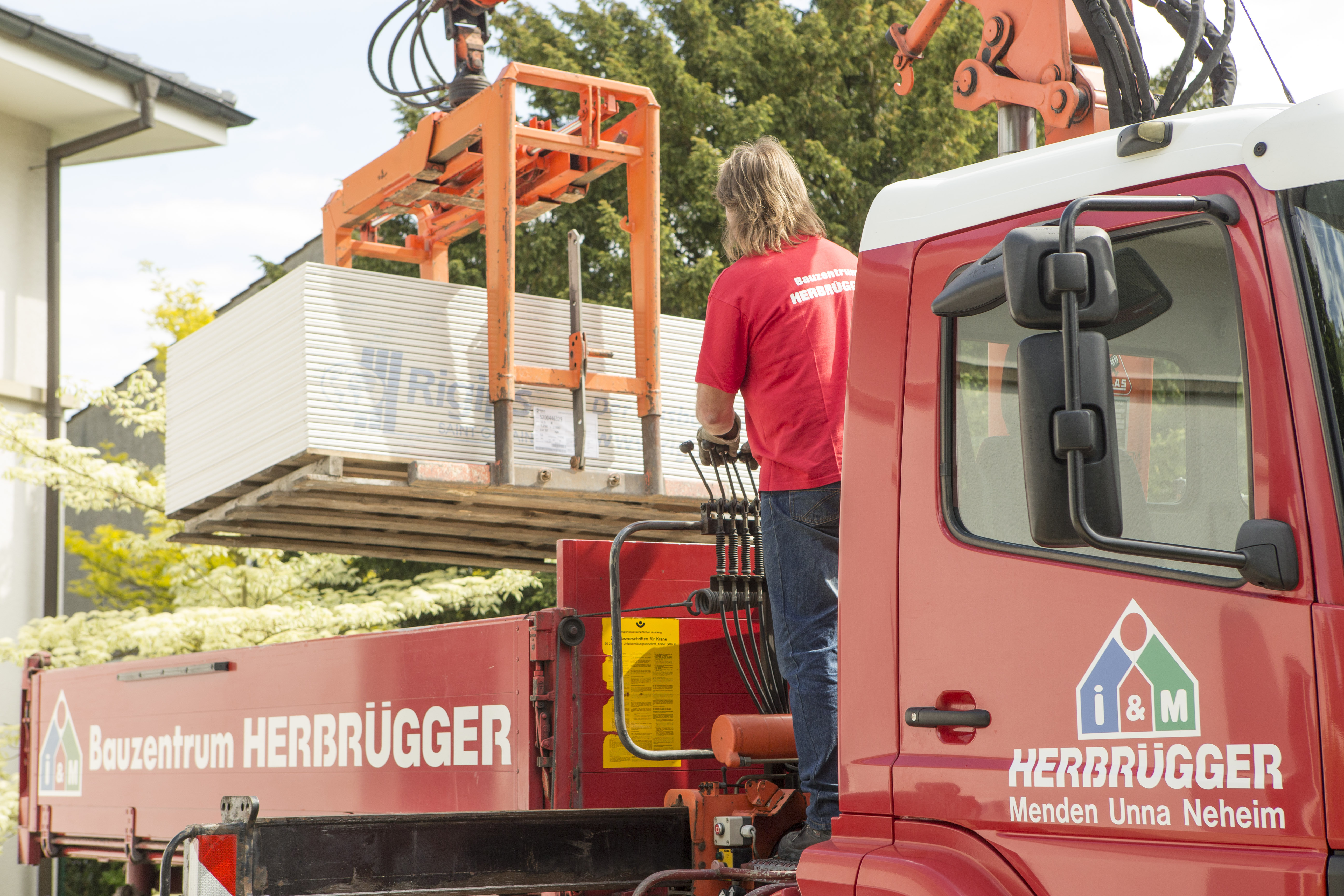 Durch unseren eigenen Fuhrpark, sind wir flexibel und in der Lage, Ihnen kurzfristig Ihren Einkauf bis nach Hause zu liefern. Diesen Service können Sie sowohl in unseren Baumärkten als auch in unseren Baustoffhandlungen in Menden, Unna und Arnsberg-Neheim nutzen